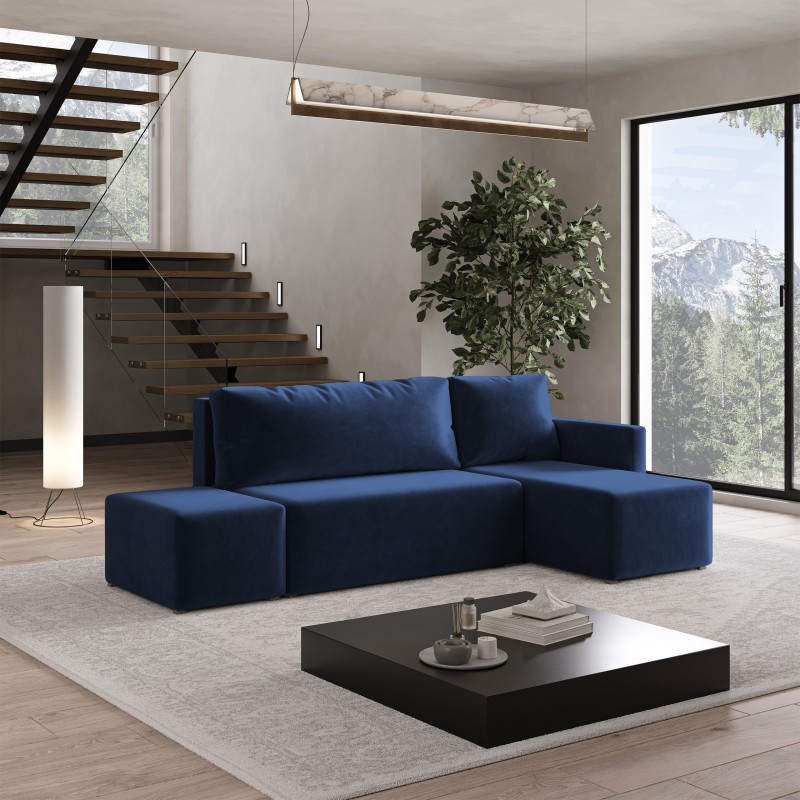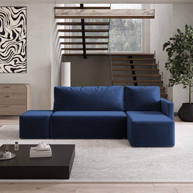 Masseno Narożnik VELOTTI z funkcją spania i pojemnikiem na pościel Narozniki L, Rozkładana sofa - Niebieski, KRONOS 09