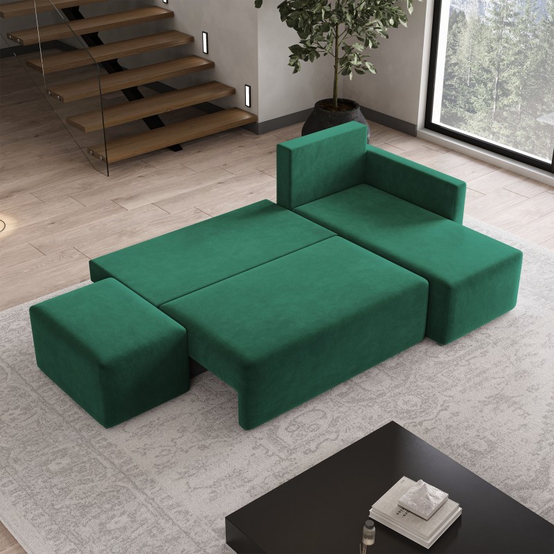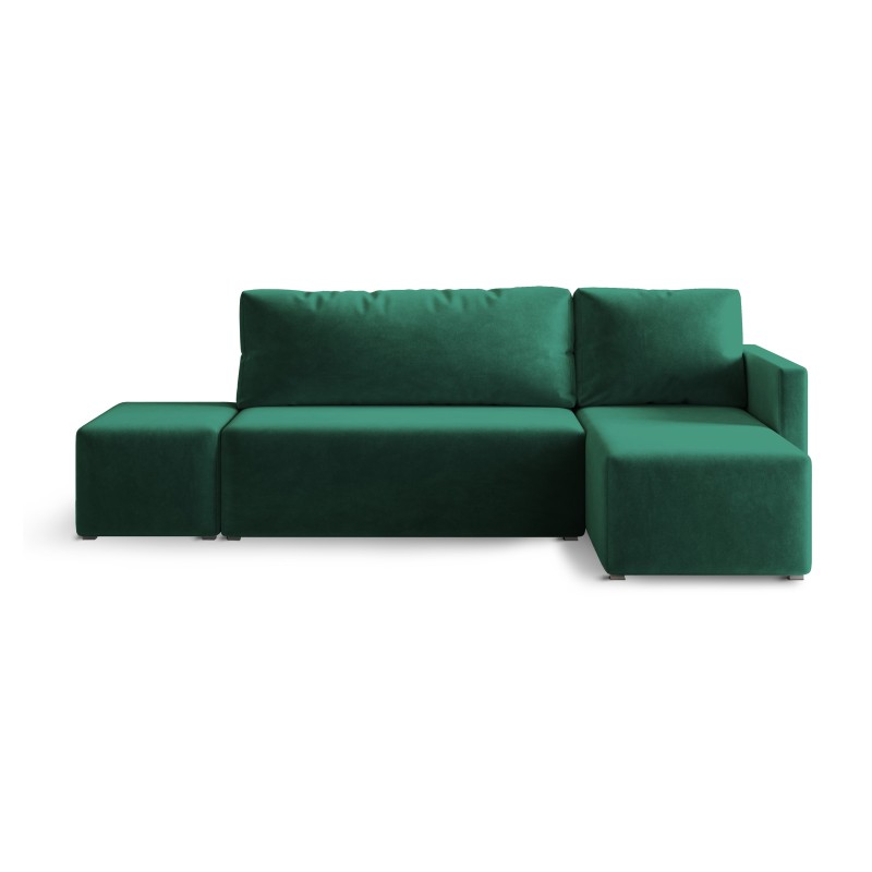 Masseno Narożnik VELOTTI z funkcją spania i pojemnikiem na pościel Narozniki L, Rozkładana sofa - Butelkowa zieleń, KRONOS 19