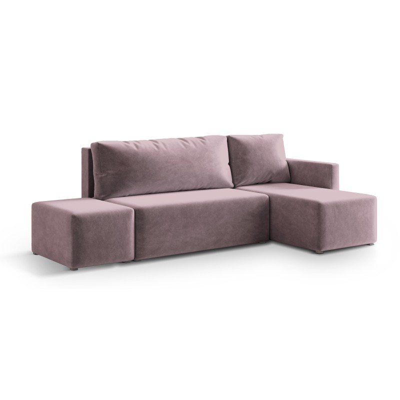 Masseno Narożnik VELOTTI z funkcją spania i pojemnikiem na pościel Narozniki L, Rozkładana sofa - Pudrowy róż, KRONOS 27