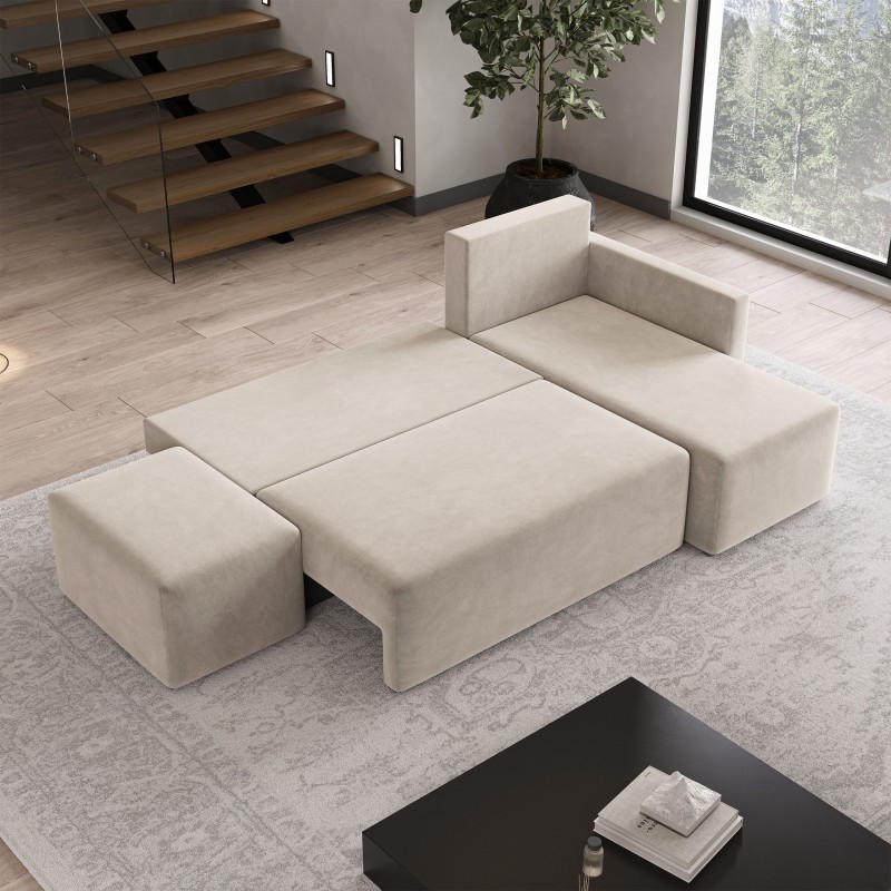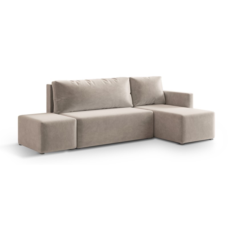 Masseno Narożnik VELOTTI z funkcją spania i pojemnikiem na pościel Narozniki L, Rozkładana sofa - Beżowy, PAROS 02
