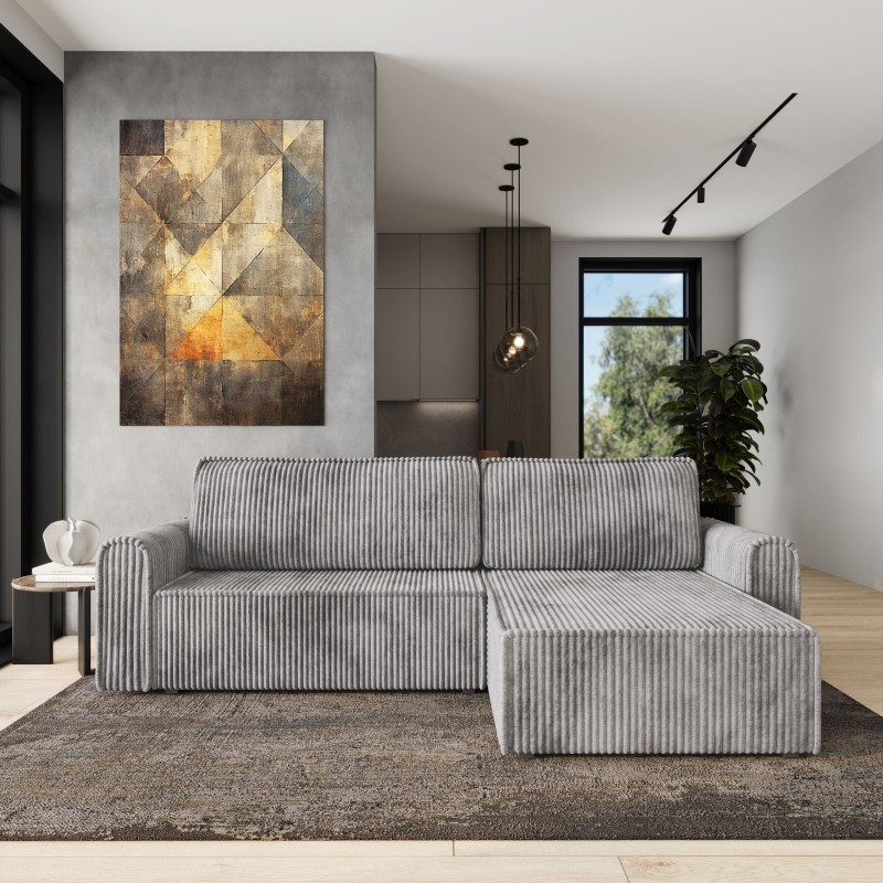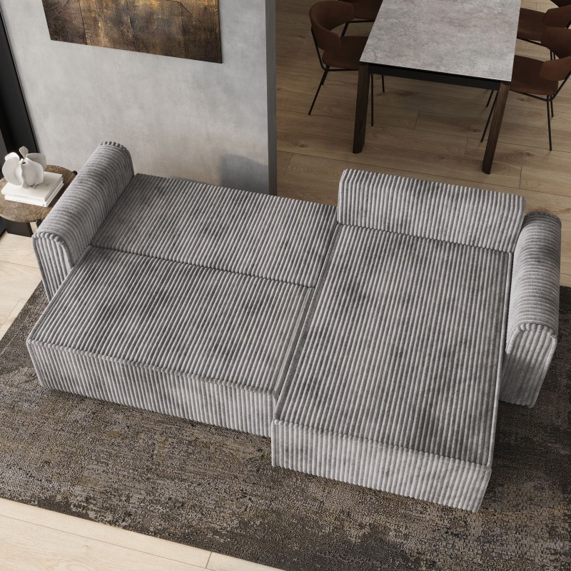 - Narożnik można łatwo i szybko rozłożyć, tworząc wygodną powierzchnię do okazjonalnego spania. Jest to idealne rozwiązanie zarówno na codzienny relax, jak i dla niezapowiedzianych gości.