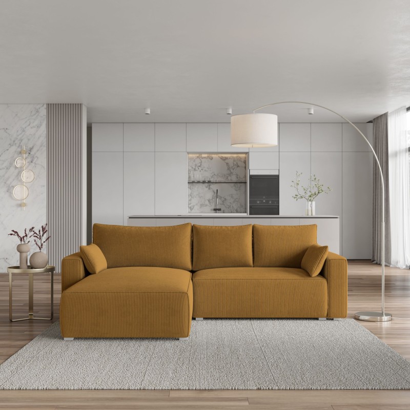 Masseno Narożnik FORIL z funkcją spania i pojemnikiem na pościel Narozniki L, Rozkładana sofa - Żółty, POSO 01
