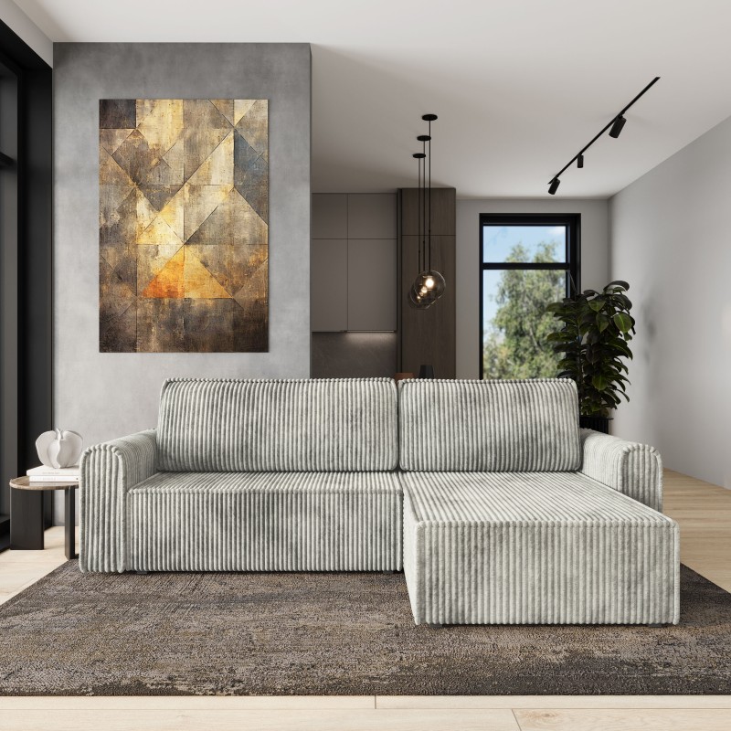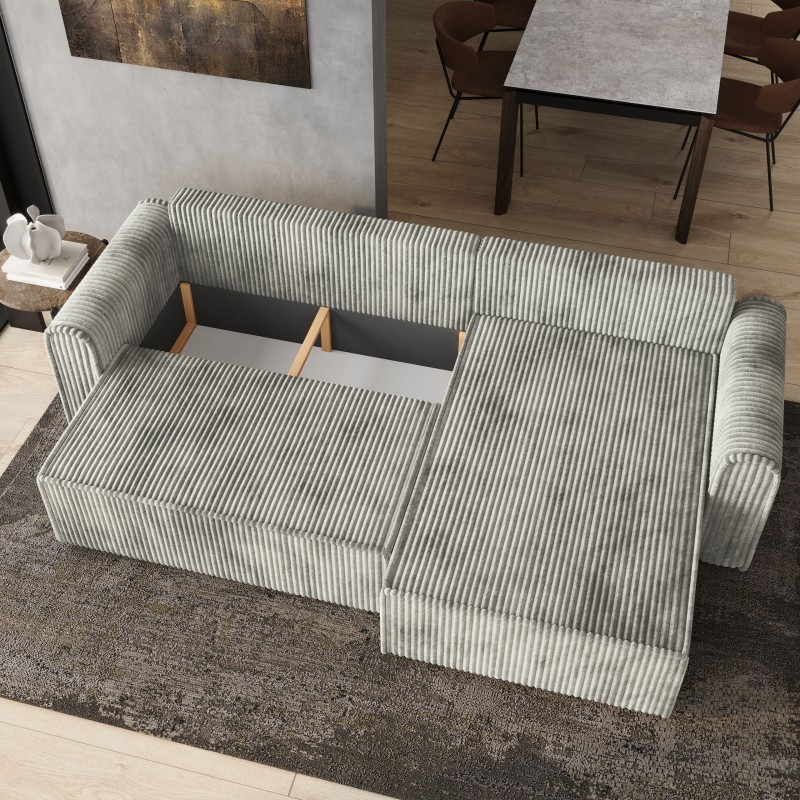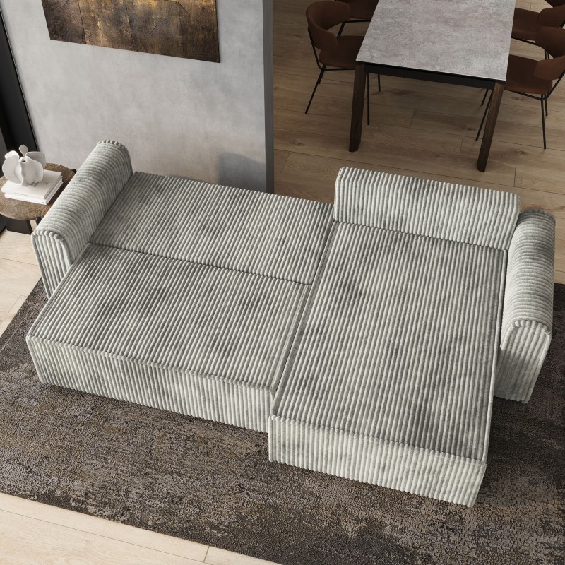 - Narożnik można łatwo i szybko rozłożyć, tworząc wygodną powierzchnię do okazjonalnego spania. Jest to idealne rozwiązanie zarówno na codzienny relax, jak i dla niezapowiedzianych gości.