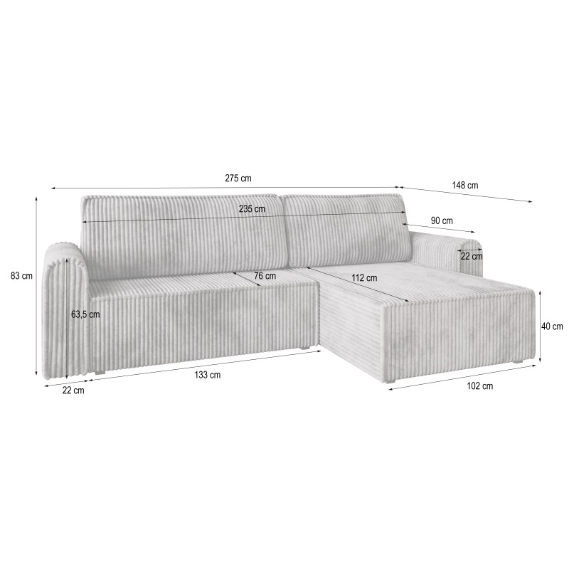 - Narożnik można łatwo i szybko rozłożyć, tworząc wygodną powierzchnię do okazjonalnego spania. Jest to idealne rozwiązanie zarówno na codzienny relax, jak i dla niezapowiedzianych gości.