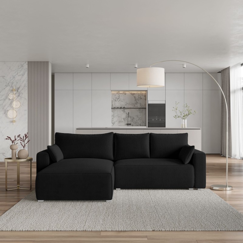 Masseno Narożnik FORIL z funkcją spania i pojemnikiem na pościel Narozniki L, Rozkładana sofa - Czarny, POSO 135