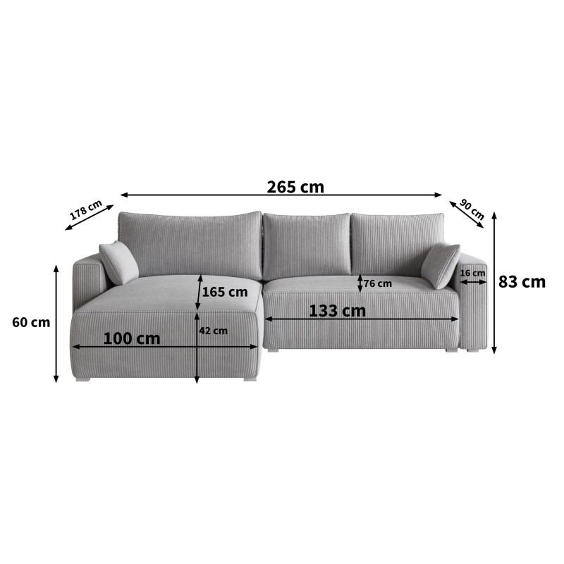 Masseno Narożnik FORIL z funkcją spania i pojemnikiem na pościel Narozniki L, Rozkładana sofa - Grafitowy, POSO 34