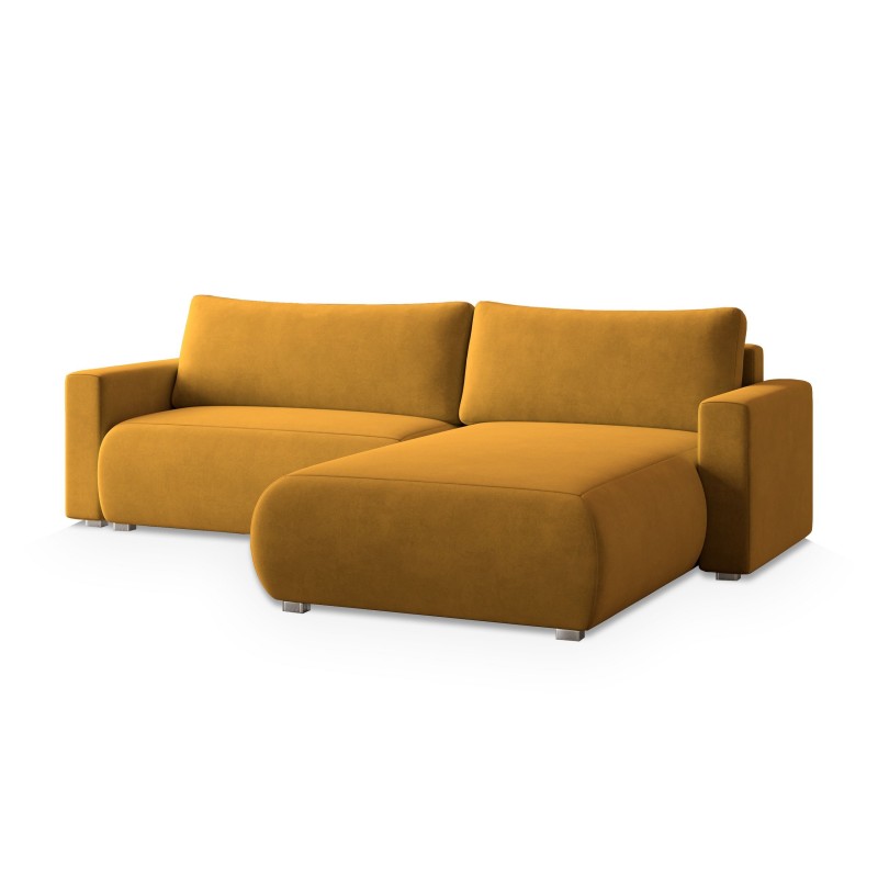 Masseno Narożnik TURIN z funkcją spania i pojemnikiem na pościel Narozniki L, Rozkładana sofa - Żółty, MONOLITH 48
