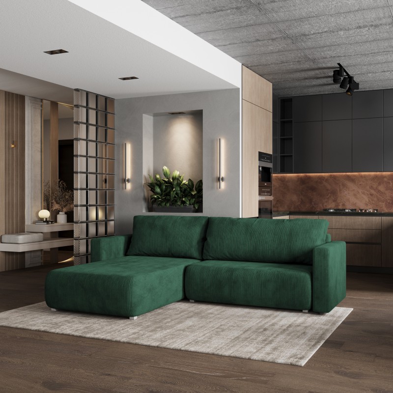Masseno Narożnik TURIN z funkcją spania i pojemnikiem na pościel Narozniki L, Rozkładana sofa - Zielony, POSO 14
