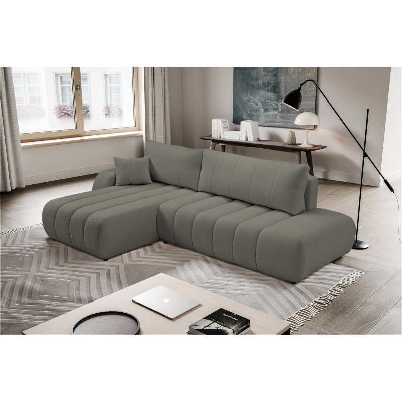 Masseno Narożnik GIOIA z funkcją spania i pojemnikiem na pościel Narozniki L, Rozkładana sofa - Szary, LAMBI 12