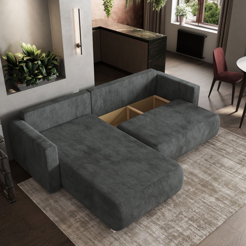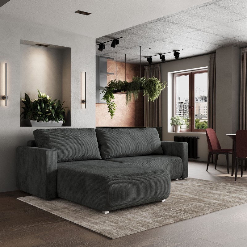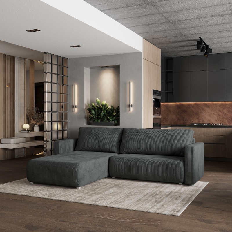 Masseno Narożnik TURIN z funkcją spania i pojemnikiem na pościel Narozniki L, Rozkładana sofa - Grafitowy, POSO 34