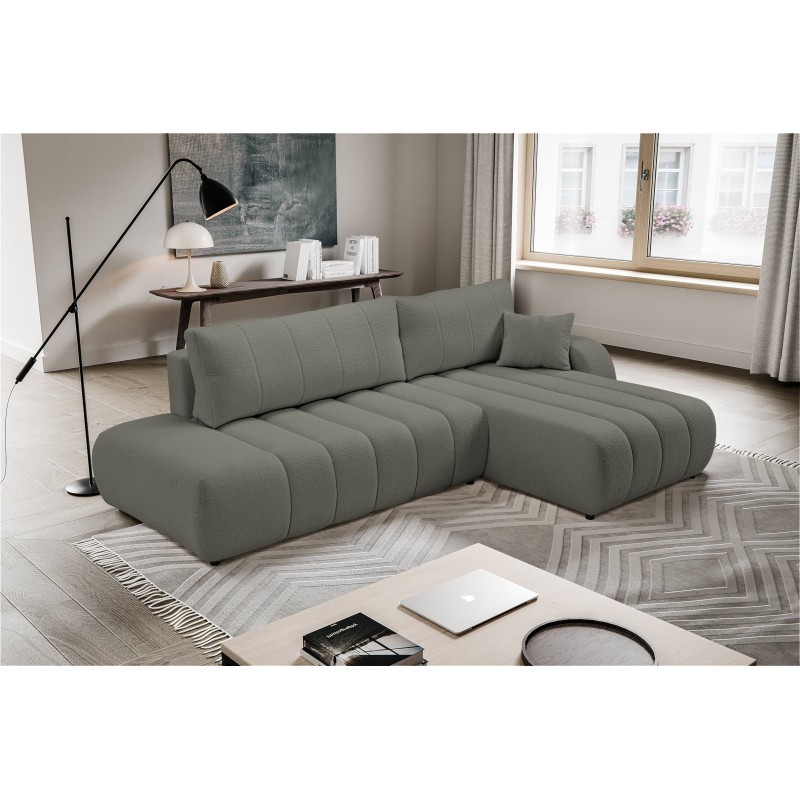 Masseno Narożnik GIOIA z funkcją spania i pojemnikiem na pościel Narozniki L, Rozkładana sofa - Szary, LAMBI 12