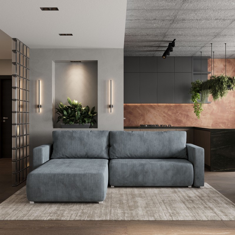 Masseno Narożnik TURIN z funkcją spania i pojemnikiem na pościel Narozniki L, Rozkładana sofa - Szary, POSO 60