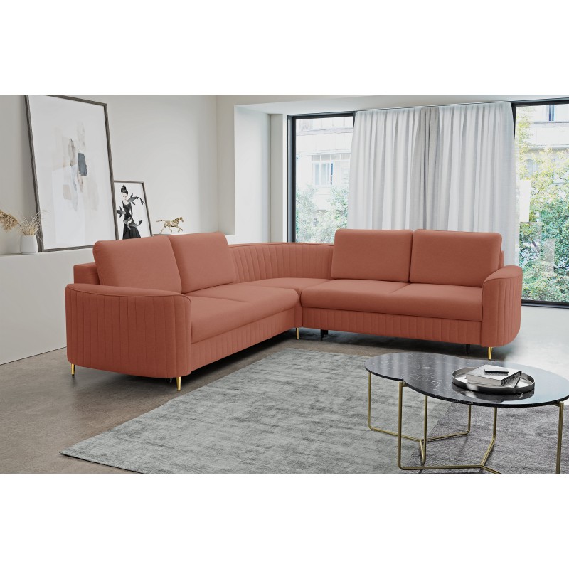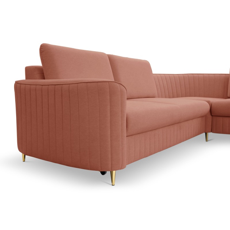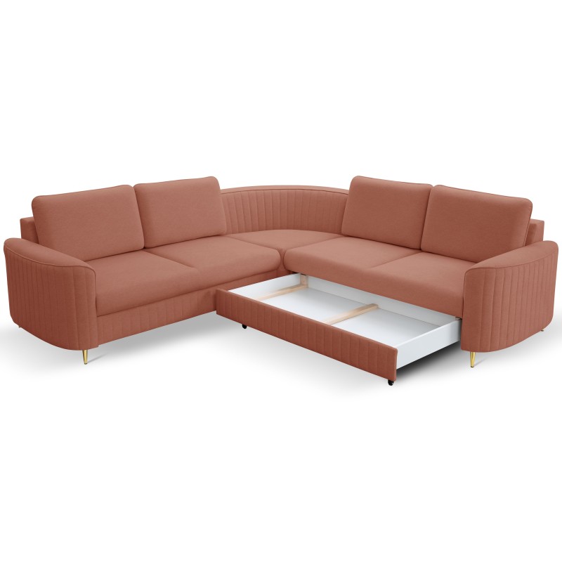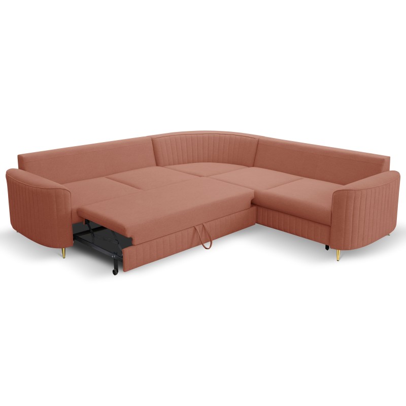 Masseno Narożnik VELA z funkcją spania i pojemnikiem na pościel Narozniki L, Rozkładana sofa - Różowy, CASTEL 55