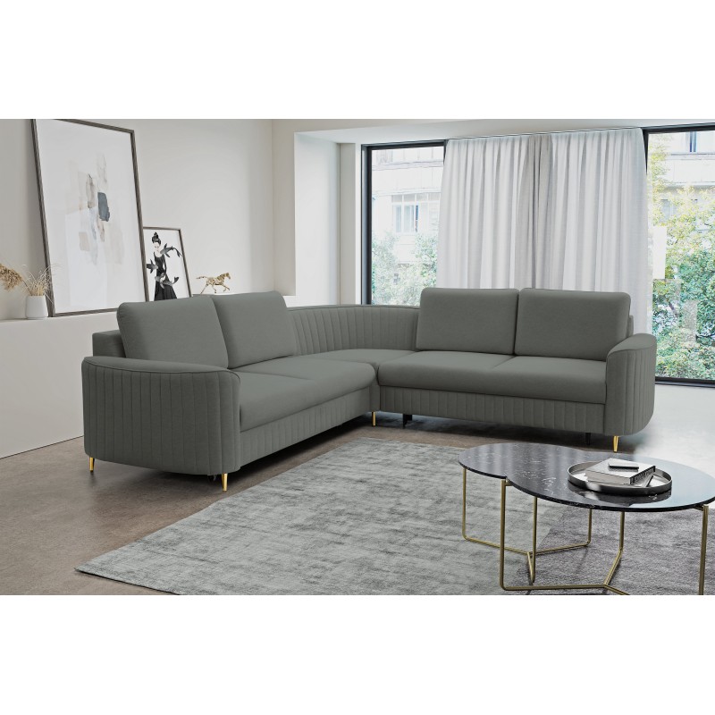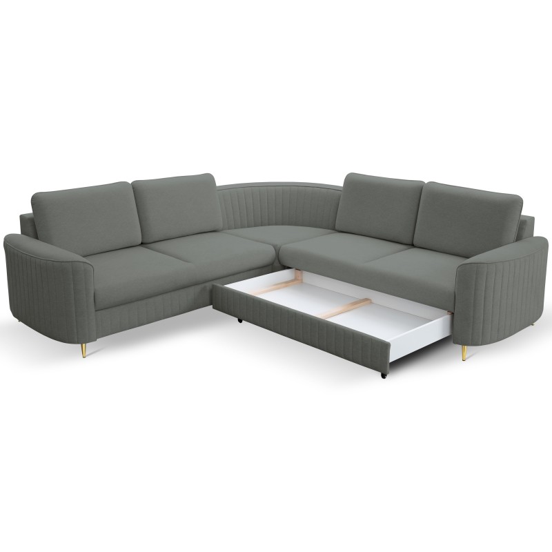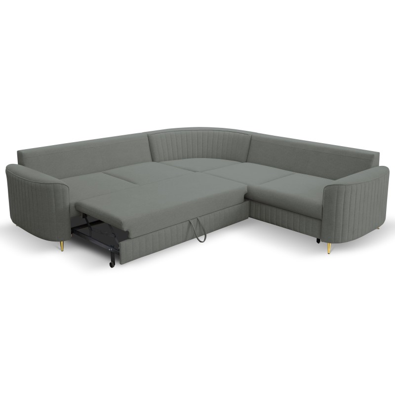Masseno Narożnik VELA z funkcją spania i pojemnikiem na pościel Narozniki L, Rozkładana sofa - Szary, CASTEL 93