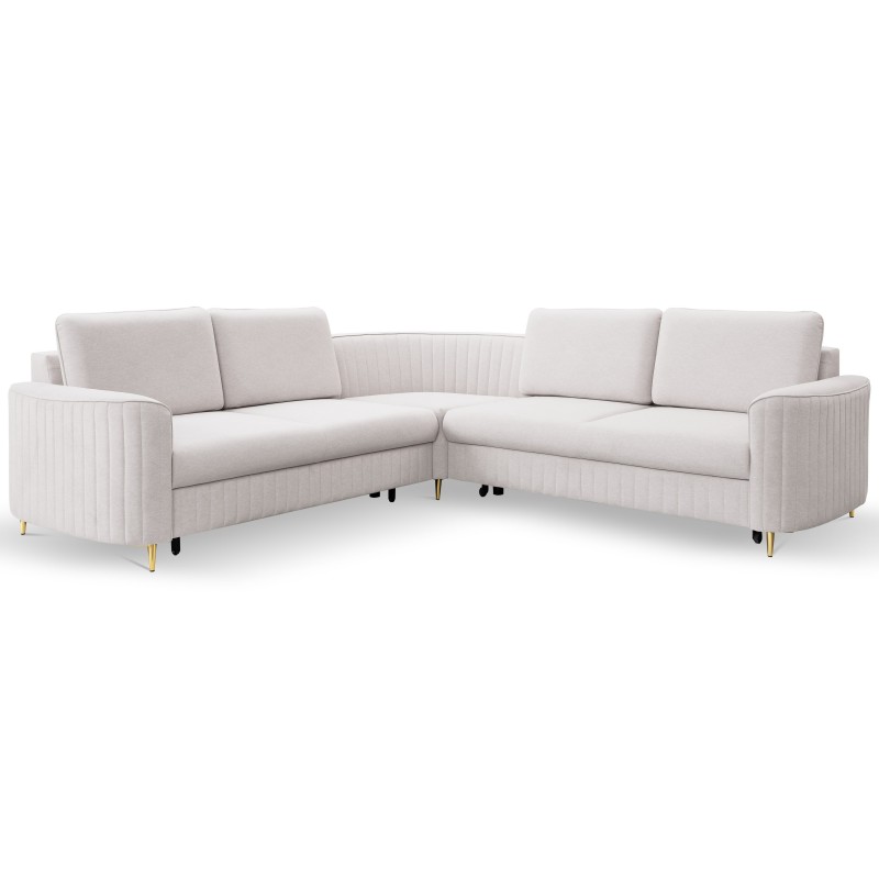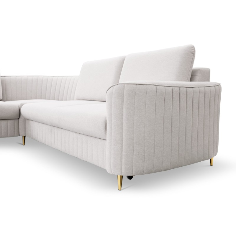Masseno Narożnik VELA z funkcją spania i pojemnikiem na pościel Narozniki L, Rozkładana sofa - Beżowy, CASTEL 04