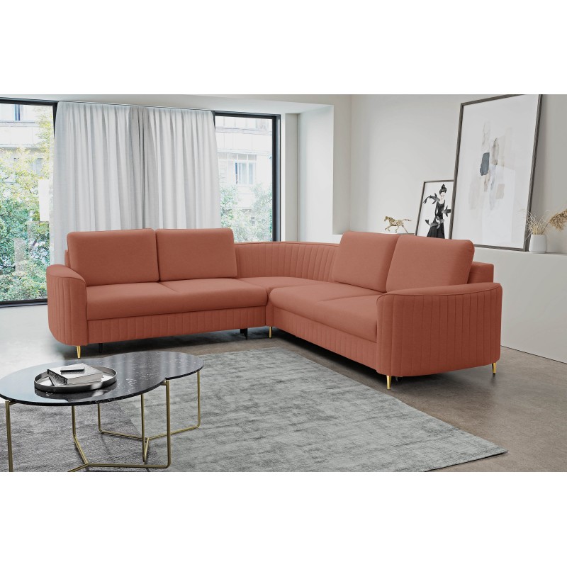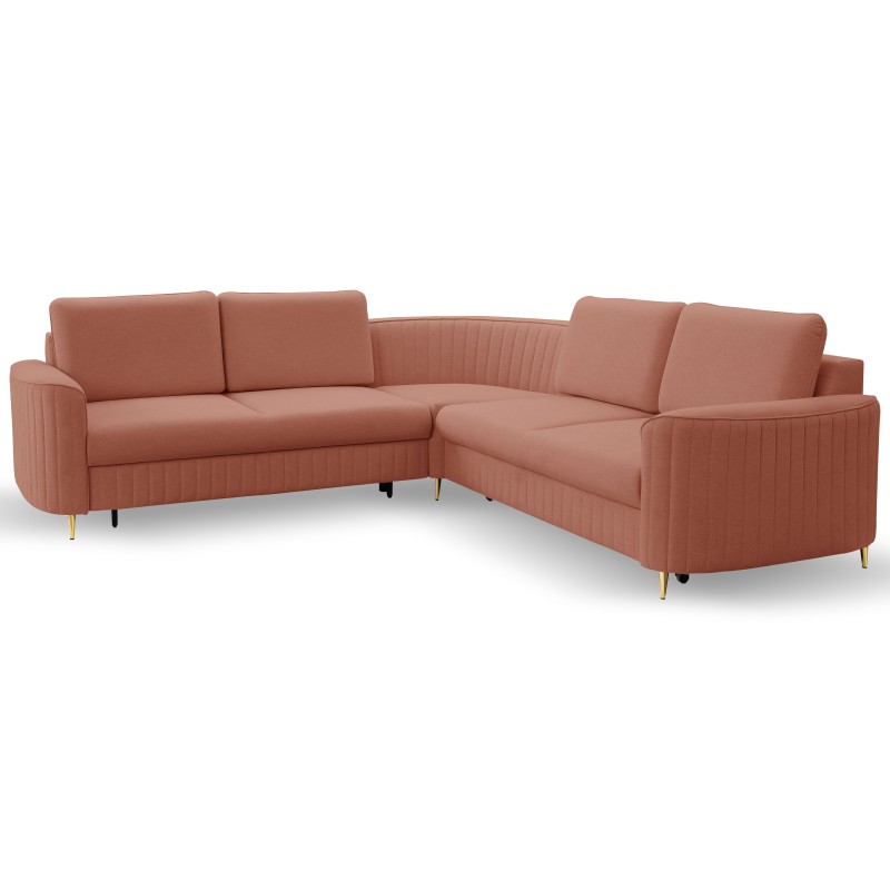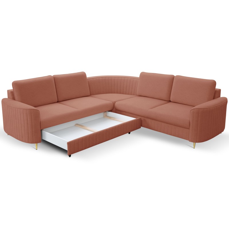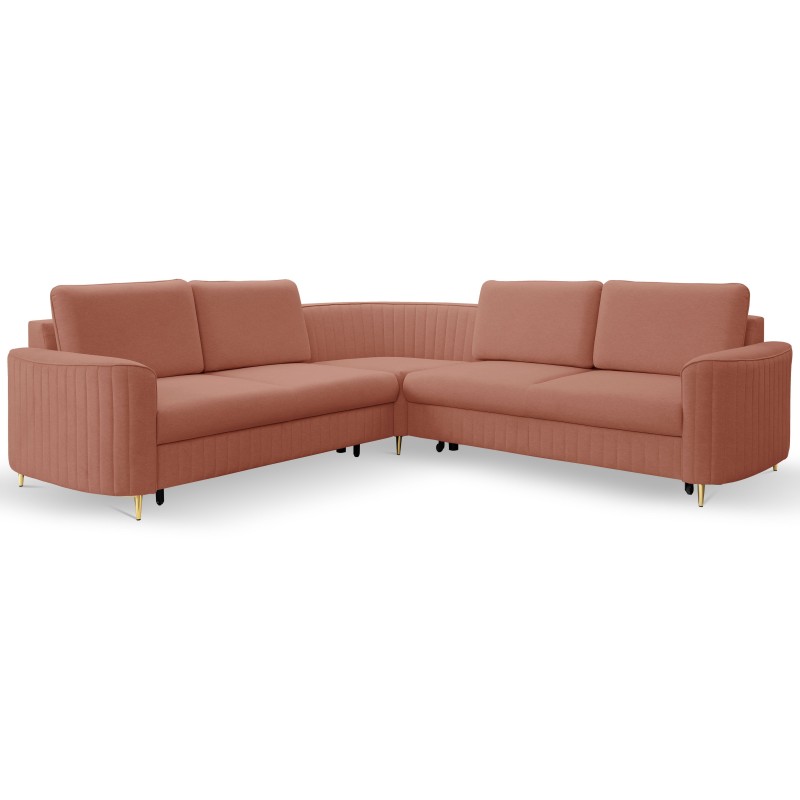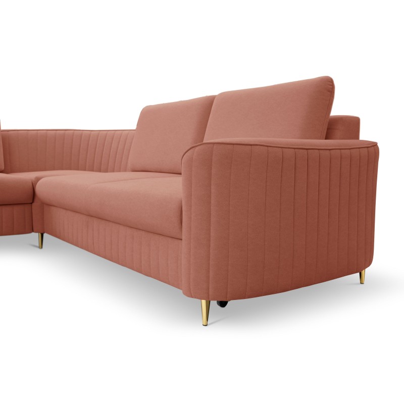 Masseno Narożnik VELA z funkcją spania i pojemnikiem na pościel Narozniki L, Rozkładana sofa - Różowy, CASTEL 55