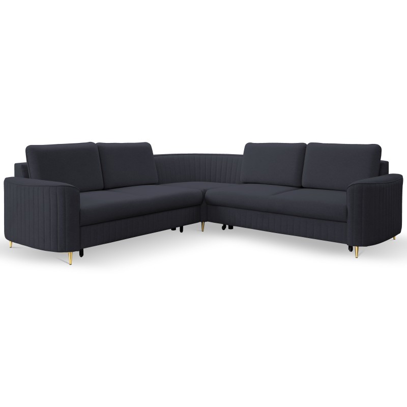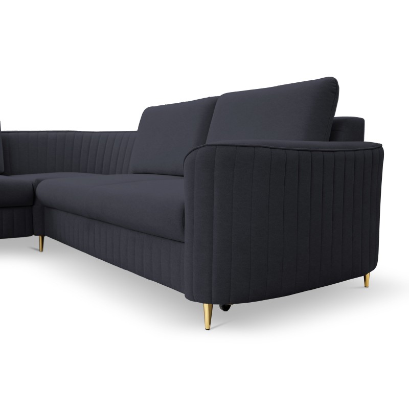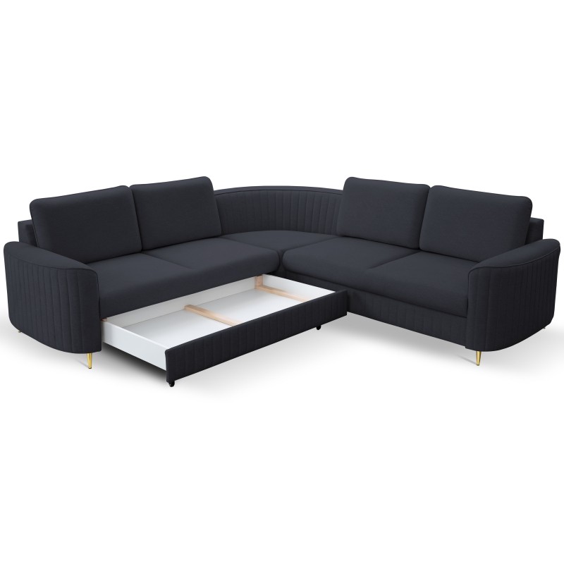 Masseno Narożnik VELA z funkcją spania i pojemnikiem na pościel Narozniki L, Rozkładana sofa - Granatowy, CASTEL 79