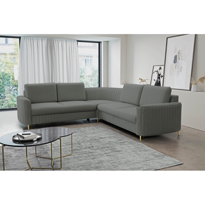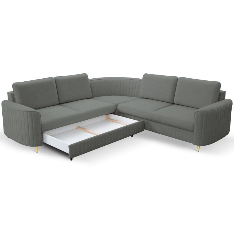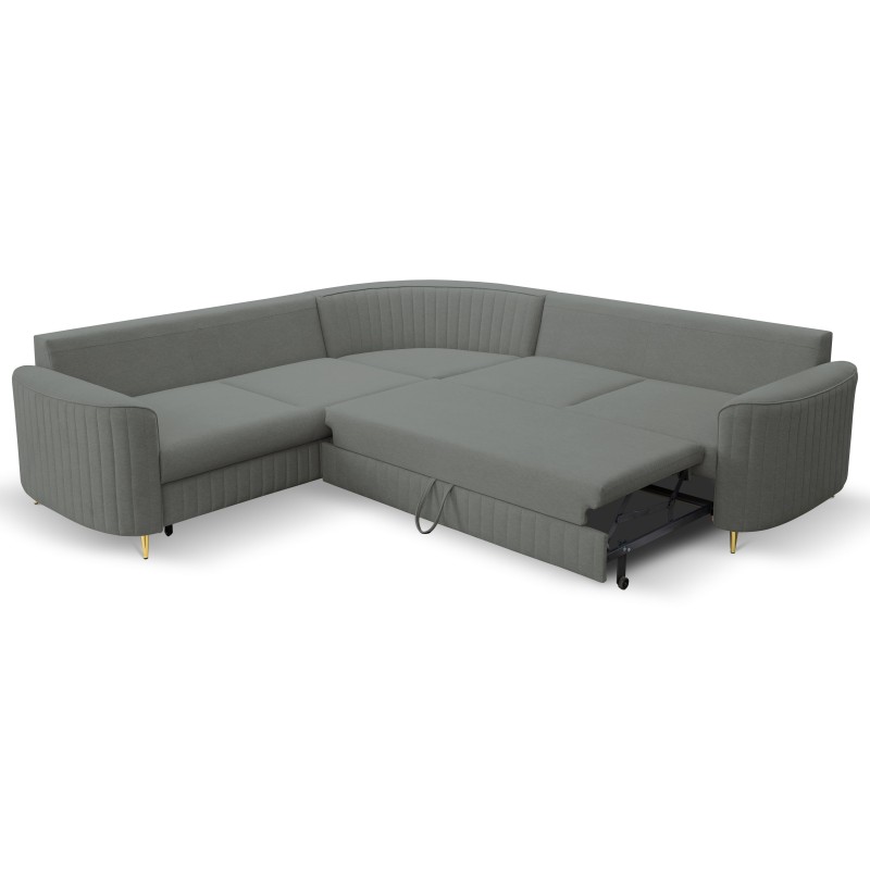 Masseno Narożnik VELA z funkcją spania i pojemnikiem na pościel Narozniki L, Rozkładana sofa - Szary, CASTEL 93