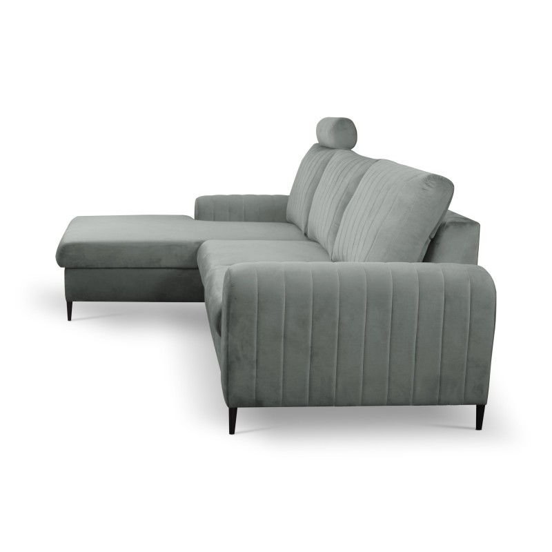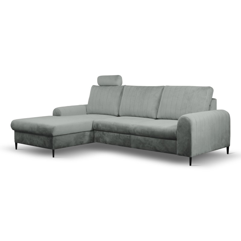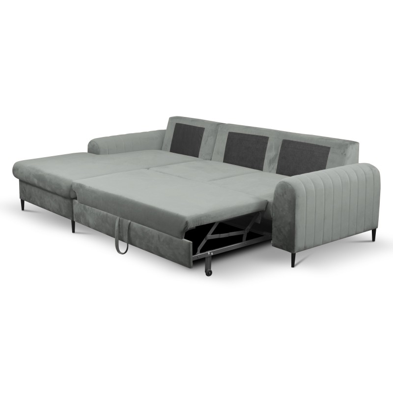 Masseno Narożnik VERONA z funkcją spania i pojemnikiem na pościel Narozniki L, Rozkładana sofa - Szary, VELLUTO GREY 16
