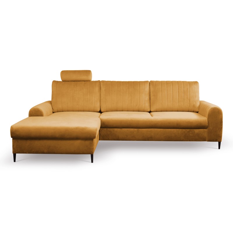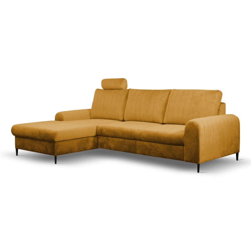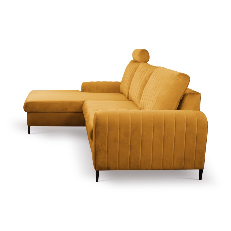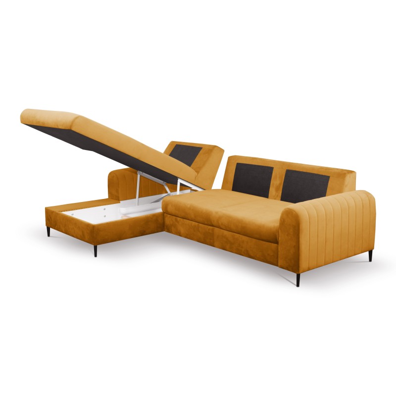 Masseno Narożnik VERONA z funkcją spania i pojemnikiem na pościel Narozniki L, Rozkładana sofa - Żółty, VELLUTO MUSTARD 8