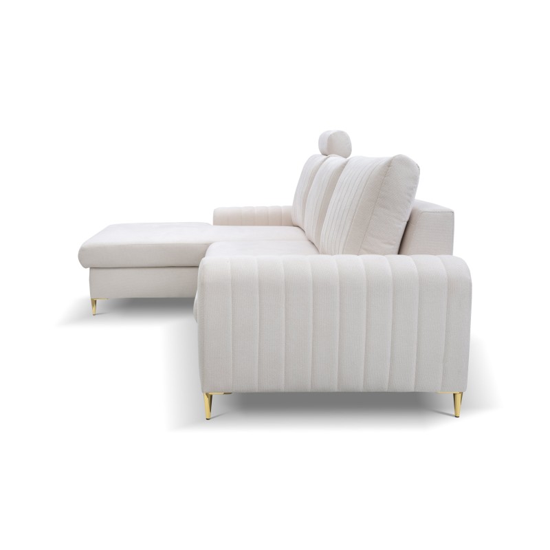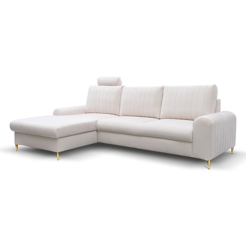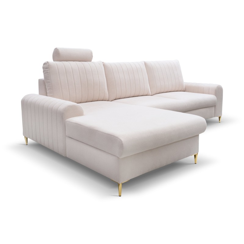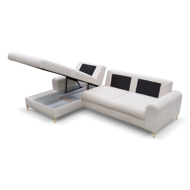 Masseno Narożnik VERONA z funkcją spania i pojemnikiem na pościel Narozniki L, Rozkładana sofa - Kremowy, LOFT 1