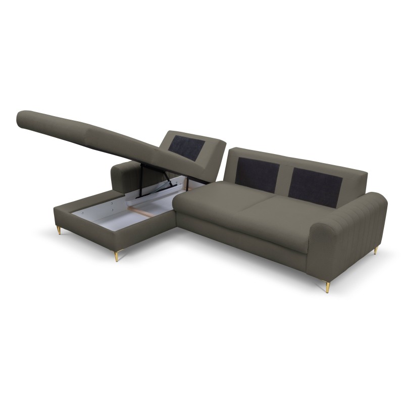 Masseno Narożnik VERONA z funkcją spania i pojemnikiem na pościel Narozniki L, Rozkładana sofa - Szary, LOFT 22