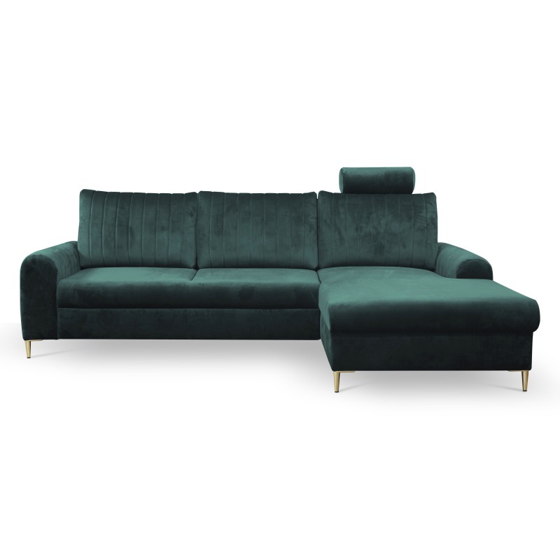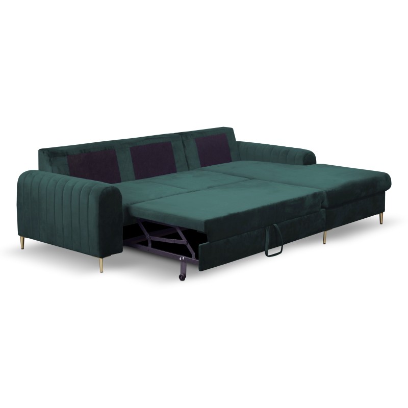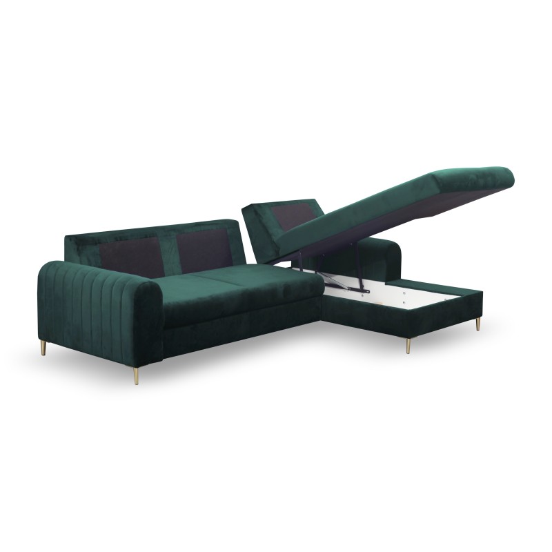 Masseno Narożnik VERONA z funkcją spania i pojemnikiem na pościel, Rozkładana sofa - Zielony, VELLUTO JUNGLE GREEN 27