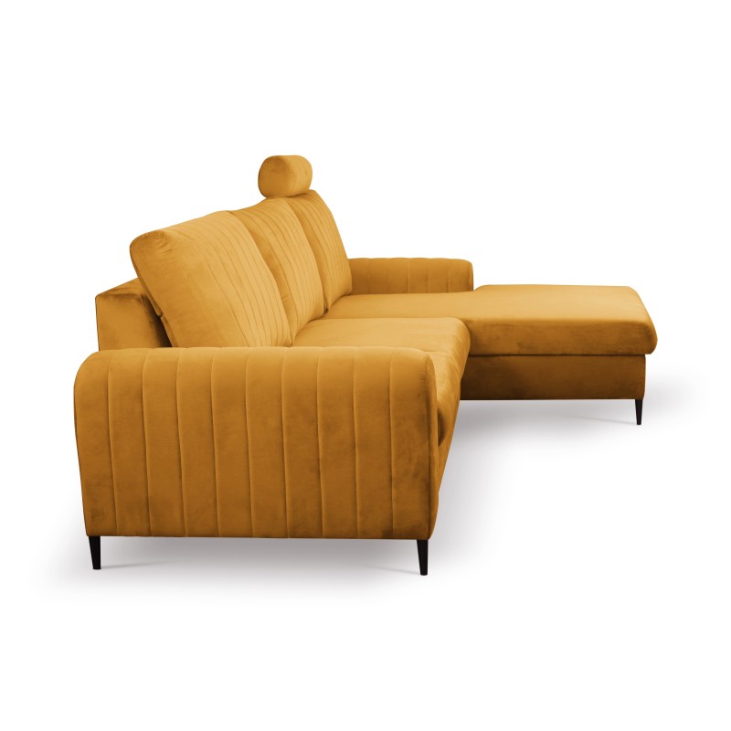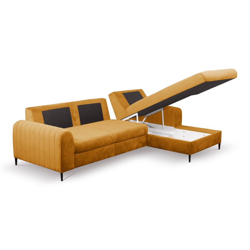 Masseno Narożnik VERONA z funkcją spania i pojemnikiem na pościel Narozniki L, Rozkładana sofa - Żółty, VELLUTO MUSTARD 8