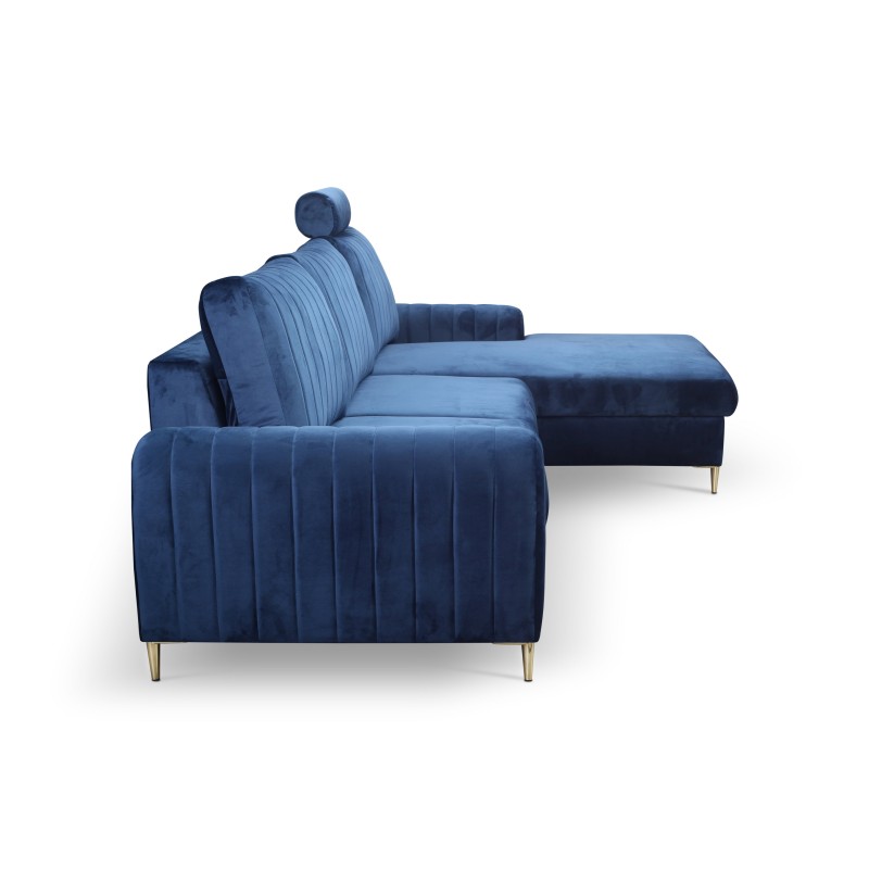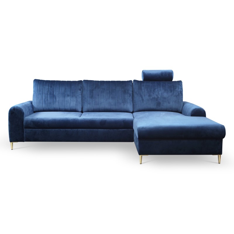 Masseno Narożnik VERONA z funkcją spania i pojemnikiem na pościel Narozniki L, Rozkładana sofa - Niebieski, VELLUTO NAVY 25