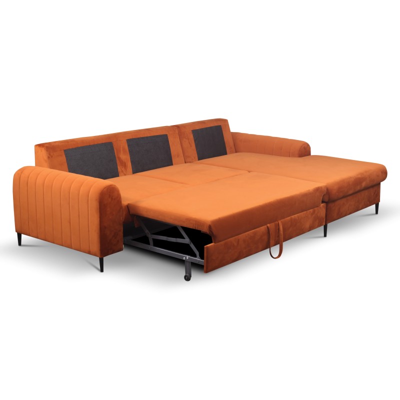 Masseno Narożnik VERONA z funkcją spania i pojemnikiem na pościel Narozniki L, Rozkładana sofa - Brązowy, VELLUTO RUST 33