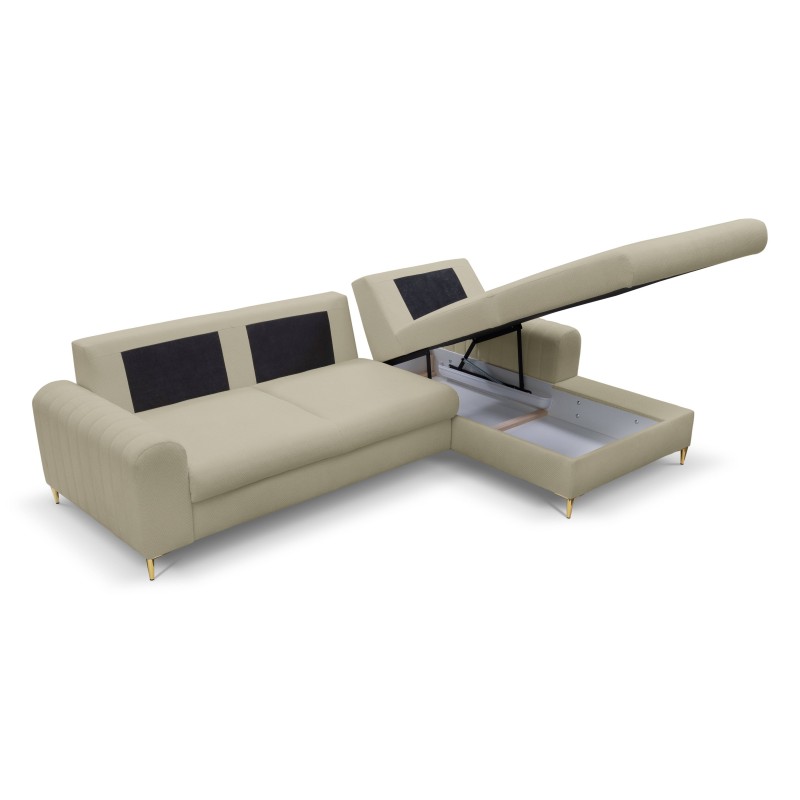 Masseno Narożnik VERONA z funkcją spania i pojemnikiem na pościel Narozniki L, Rozkładana sofa - Beżowy, LOFT 2