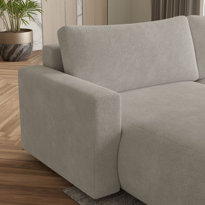 Nasza sofa narożna z obszerną otomaną jest prawdziwą oazą relaksu. Mebel wykonany z nowoczesnego materiału pochodzącego z recyklingu, nie tylko zachwyca wzornictwem, ale także gwarantuje trwałość i niezwykłą przyjemność dotyku.