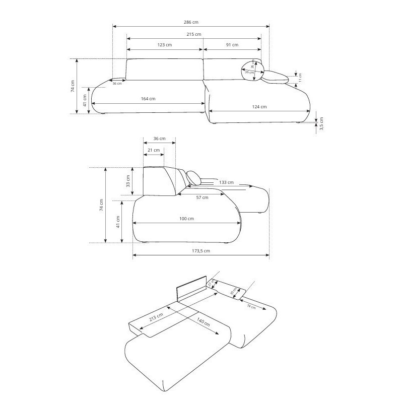 - Narożnik wolnostojący – tył obity jest tą samą tkaniną, dzięki czemu sofa może być elastycznie ustawiona w salonie.