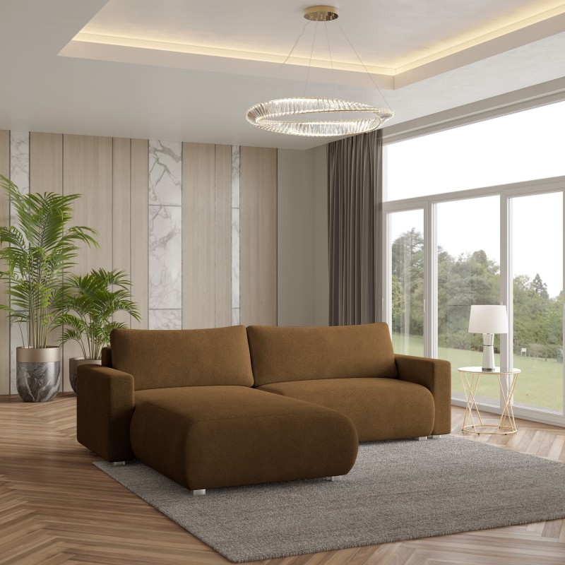 Masseno Narożnik TURIN z funkcją spania i pojemnikiem na pościel Narozniki L, Rozkładana sofa - Brąz, NOW OR NEVER 56