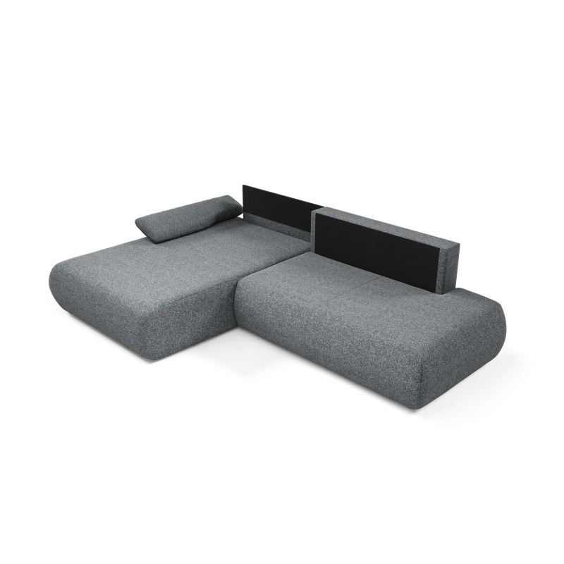 - Narożnik wolnostojący – tył obity jest tą samą tkaniną, dzięki czemu sofa może być elastycznie ustawiona w salonie.