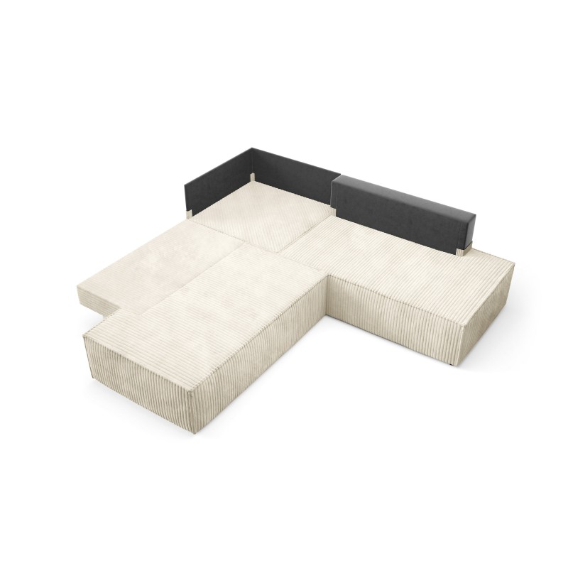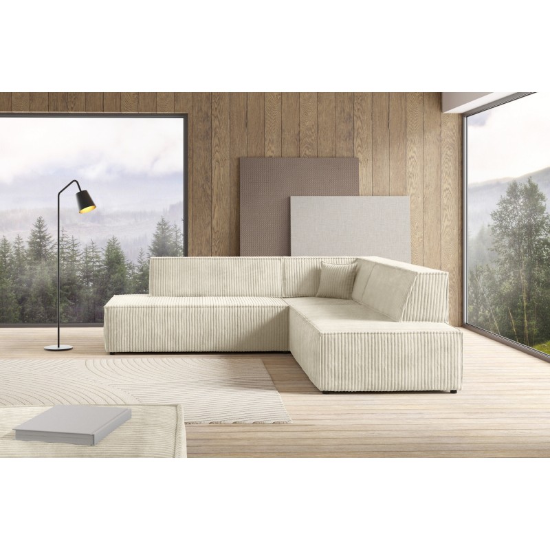 Masseno Narożnik TESSO z funkcją spania i pojemnikiem na pościel Narozniki L, Rozkładana sofa - Kremowy, TILIA 03