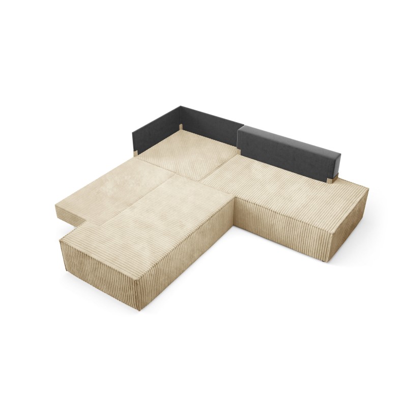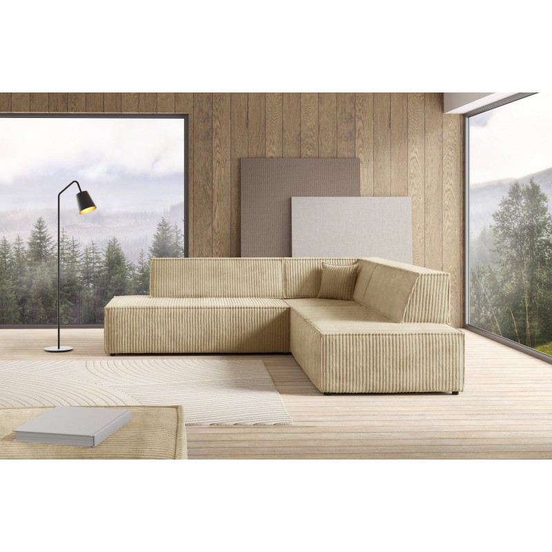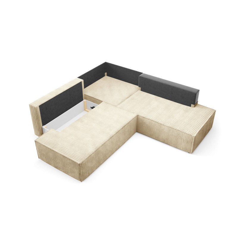 Masseno Narożnik TESSO z funkcją spania i pojemnikiem na pościel Narozniki L, Rozkładana sofa - Beżowy, TILIA 11