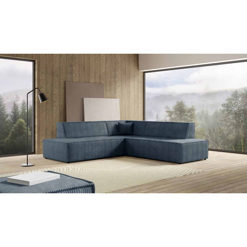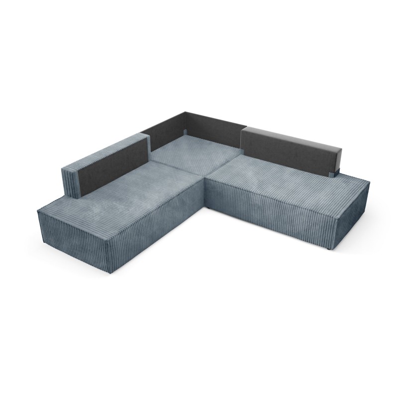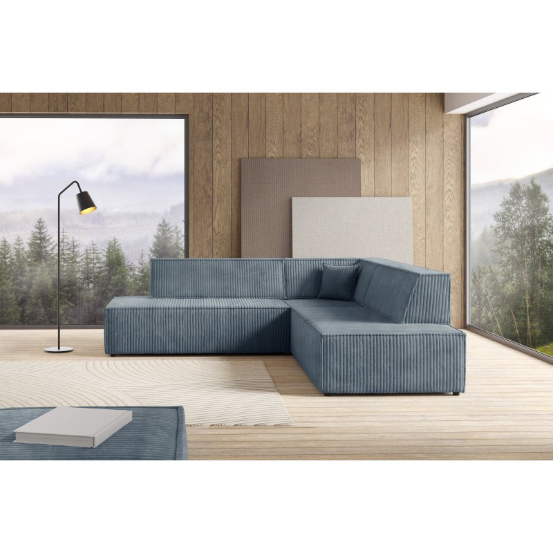 - Narożnik wolnostojący – tył obity jest tą samą tkaniną, dzięki czemu sofa może być elastycznie ustawiona w salonie.