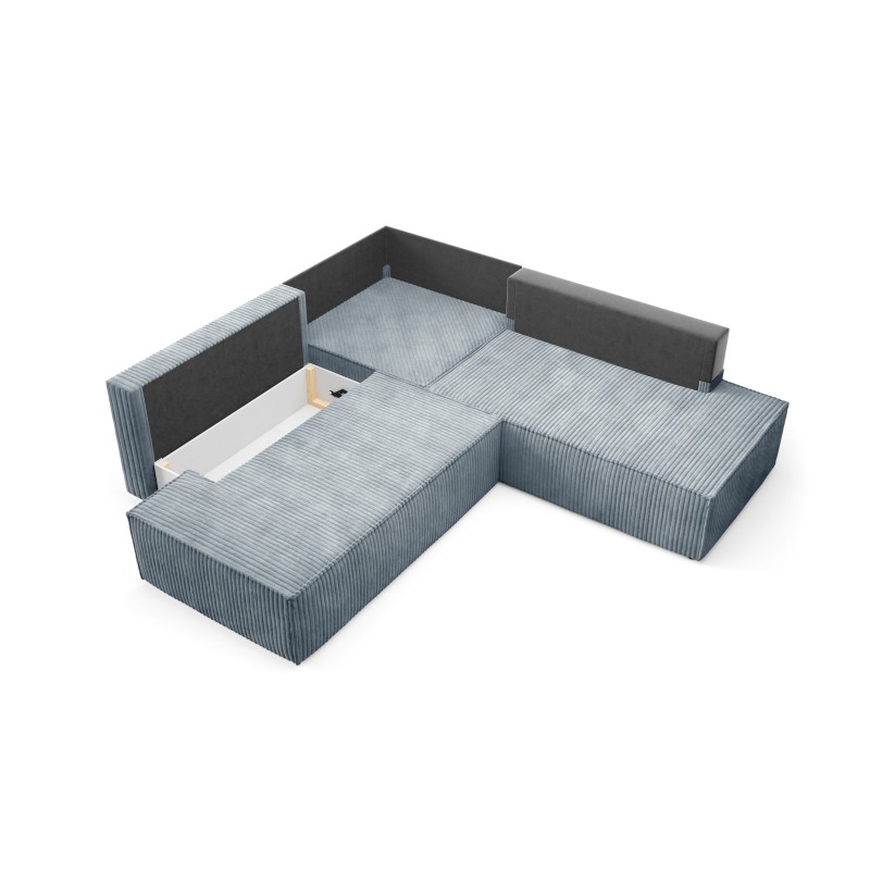 Masseno Narożnik TESSO z funkcją spania i pojemnikiem na pościel Narozniki L, Rozkładana sofa - Szary, TILIA 85