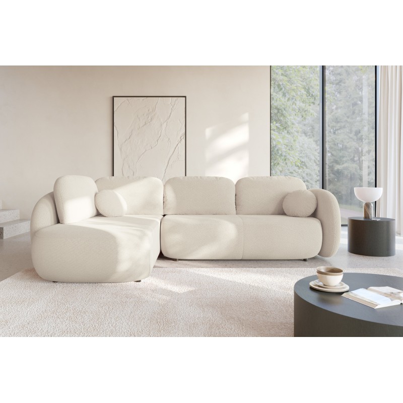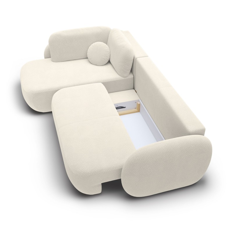 Masseno Narożnik AMICO z funkcją spania i pojemnikiem na pościel Narozniki L, Rozkładana sofa - Kremowy, EGON 22