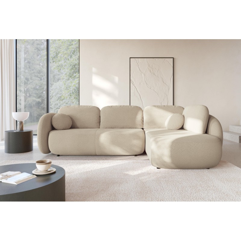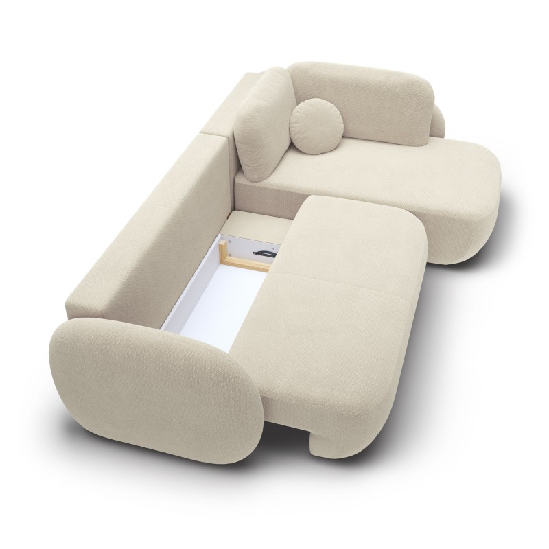 Masseno Narożnik AMICO z funkcją spania i pojemnikiem na pościel Narozniki L, Rozkładana sofa - Beżowy, EGON 26
