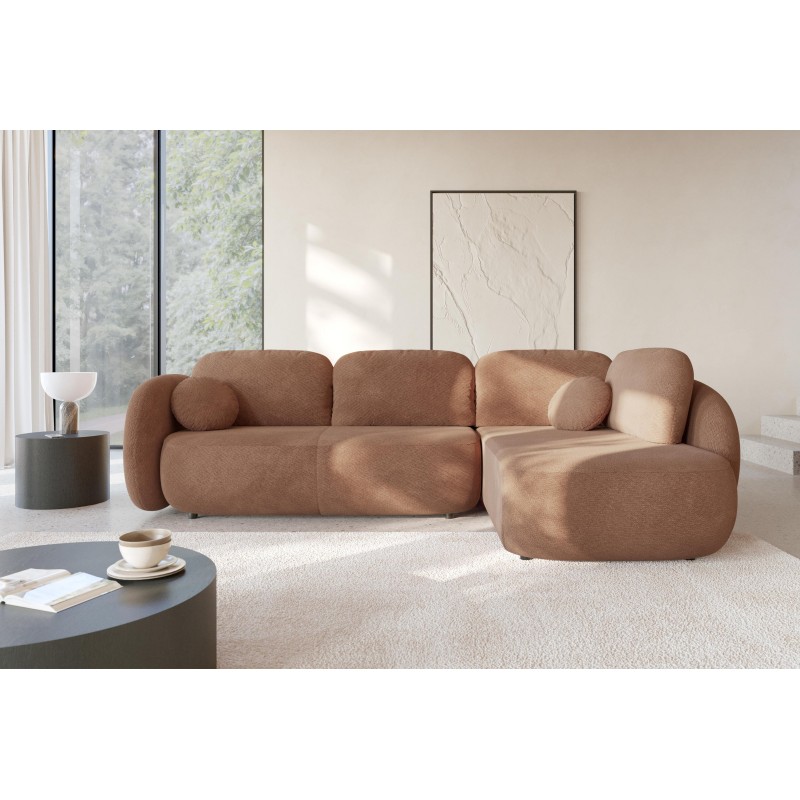 Masseno Narożnik AMICO z funkcją spania i pojemnikiem na pościel Narozniki L, Rozkładana sofa - Brązowy, EGON 44