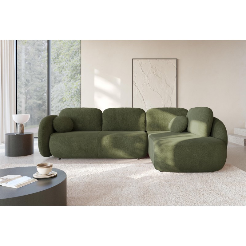 Masseno Narożnik AMICO z funkcją spania i pojemnikiem na pościel Narozniki L, Rozkładana sofa - Zielony, EGON 75