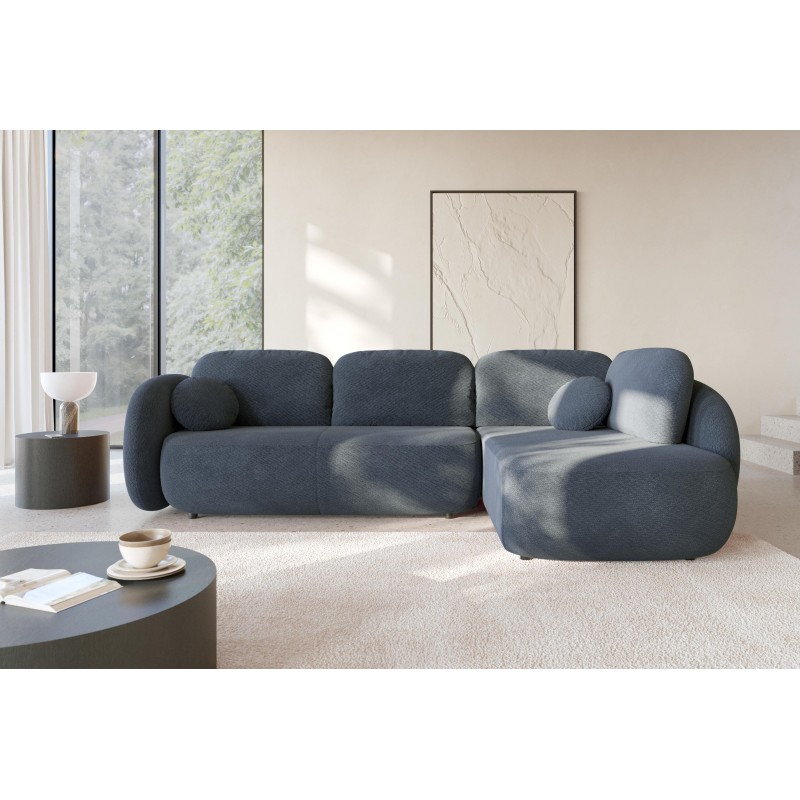 Masseno Narożnik AMICO z funkcją spania i pojemnikiem na pościel Narozniki L, Rozkładana sofa - Granatowy, EGON 86
