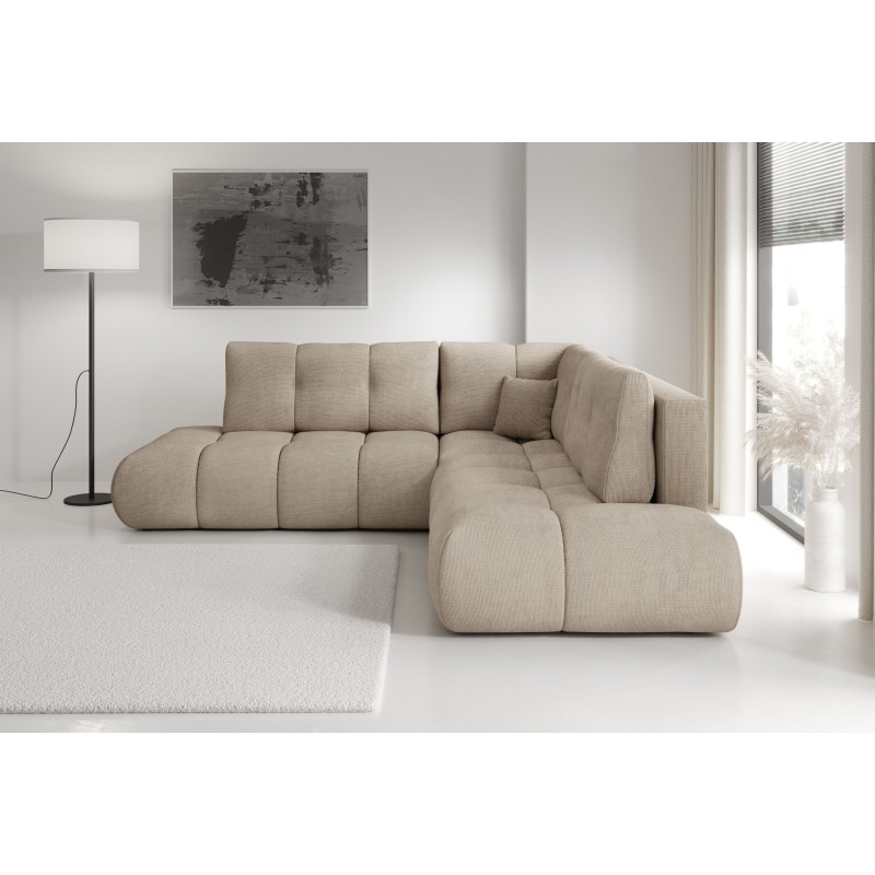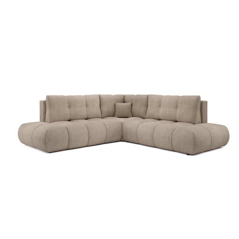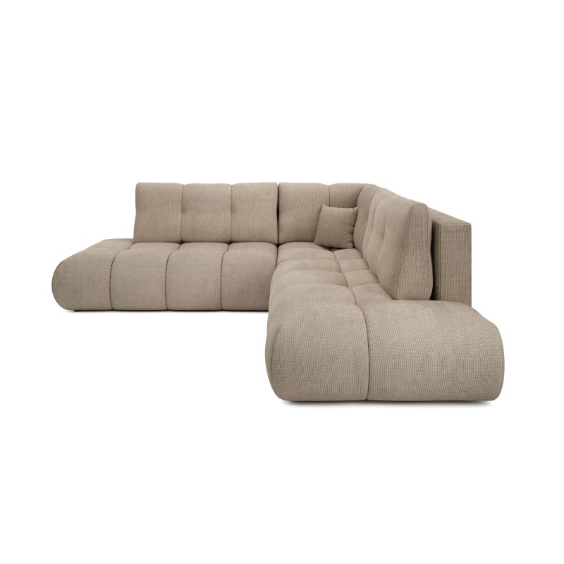- Narożnik wolnostojący – tył obity jest tą samą tkaniną, dzięki czemu sofa może być elastycznie ustawiona w salonie.