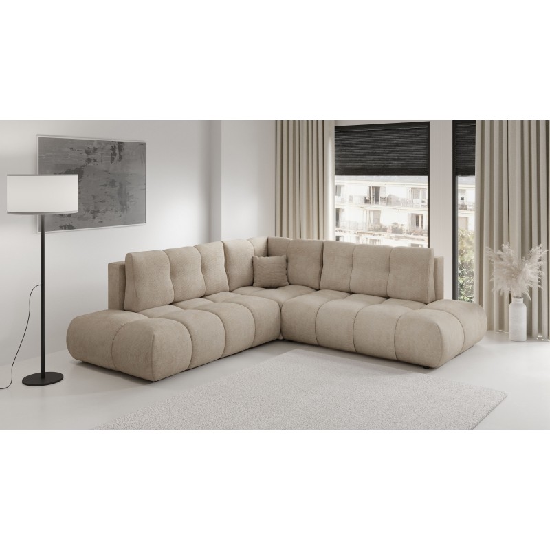 Masseno Narożnik DUCA z funkcją spania i pojemnikiem na pościel Narozniki L, Rozkładana sofa - Beżowy, FLOW 02