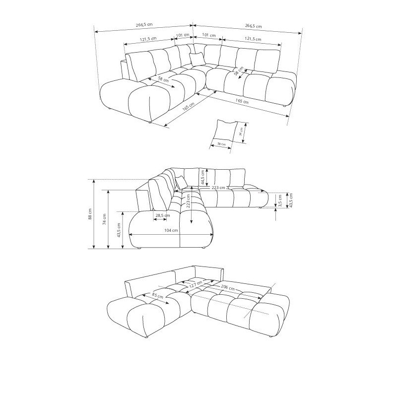 - Głębokość: 266,5 cm
