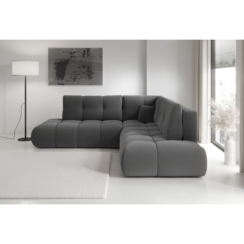 - Narożnik wolnostojący – tył obity jest tą samą tkaniną, dzięki czemu sofa może być elastycznie ustawiona w salonie.