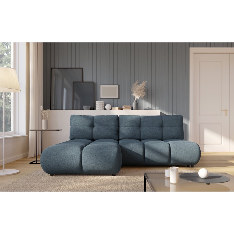 Masseno Narożnik CORSO z funkcją spania i pojemnikiem na pościel Narozniki L, Rozkładana sofa - Niebieski, NOW OR NEVER 77
