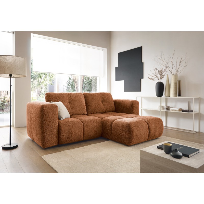 - Narożnik wolnostojący – tył obity jest tą samą tkaniną, dzięki czemu sofa może być elastycznie ustawiona w salonie.